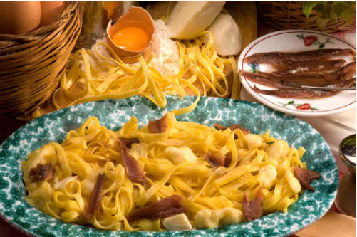 tagliatelle al dente in acqua bollente salata, scolatele